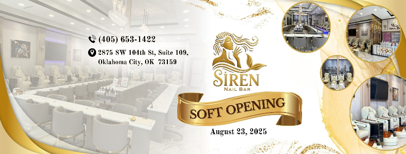 Nail Salon SW 104th St, Oklahoma City, OK 73159. At Siren Nail Bar, we believe beauty should feel bold, confident, and entirely yours. Nestled in the heart of Oklahoma City, our salon is more than just a place for a manicure—it’s a destination for self-care, style, and sparkle. From the moment you walk in, you’re not just a client. You’re our guest, and your comfort is our top priority. Siren Nail Bar is located at 2875 SW 104th St, Oklahoma City, OK 73159, USA